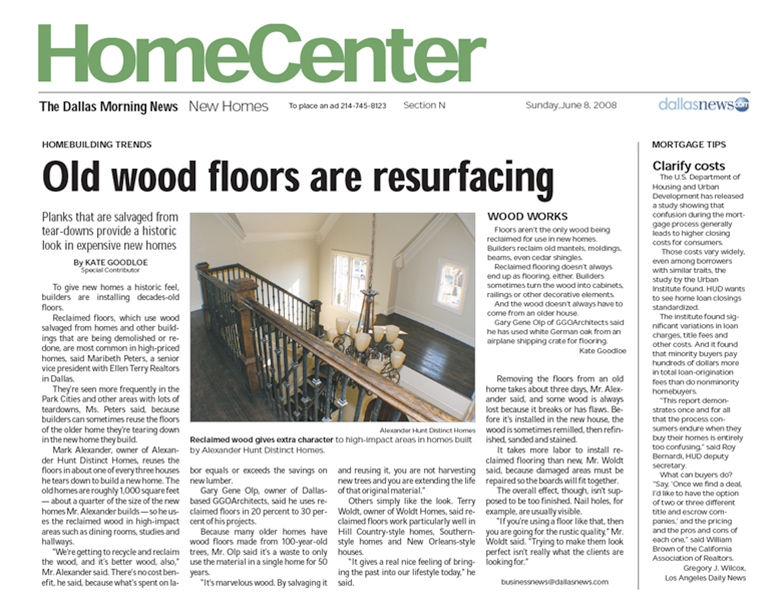 Alexander Hunt Homes was featured in the 'Dallas Morning News.'